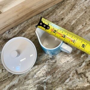 Creamer is 4" Tall & 4.25" from spout to handle.