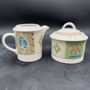 Vintage Mikasa Country Quilt Cream and Sugar Set with Lid