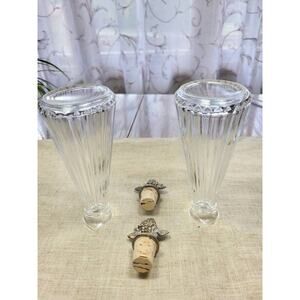 Topped with decorative silver plate grape cluster cork stoppers