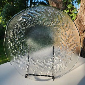 Vintage Mikasa Crystal Hostess Platter Holly Design 14" Round Serving Tray Japan