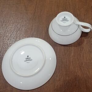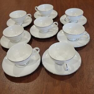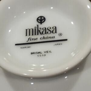 Vintage Mikasa Fine China BRIDAL VEIL Cup Saucer Retired Narumi Japan. Perfect shape, never been used. White with silver trim. I have several available,please see the last photos, will be happy to bundle for you. Please notice - this listing for one set only, last photos for information only