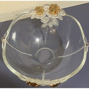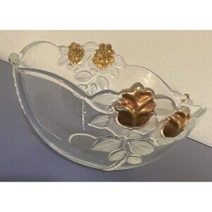 Vintage Mikasa Gilded Rose Gold Accented Frosted Leaf Crystal Clear fruit Bowl