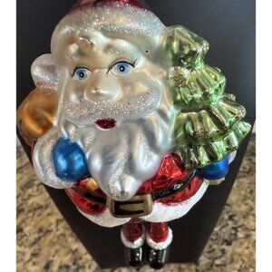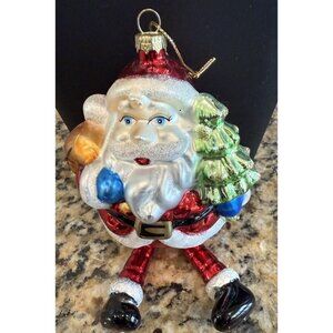 This vintage Mikasa Glass Dangling Leg Santa Holiday Ornament Toy Sack is a charming addition to any Christmas tree. Made of glass and featuring a Santa Claus shape with dangling legs, this medium-sized ornament is adorned in red and multicolor hues. This original piece from the 1990s exudes a nostalgic holiday theme perfect for collectors or those looking to add a unique touch to their Christmas decorations. The hanging design and decorative features make it a delightful ornament for adults to enjoy during the festive season.  Thank you for viewing. (ChrOrn61012251PM).
