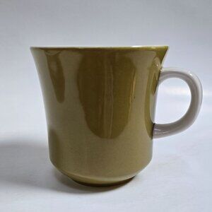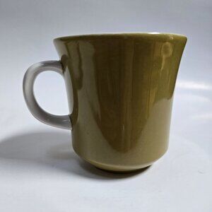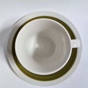 Vintage Mikasa Olive Green Ceramic Cera Stone Cup & Set D1450. A Beautifully Crafted Vintage Cup & Saucer Set Boasts a Deep, Earthy Green Hue That Brings a Unique, Retro Flair to Any Tea or Coffee Break.