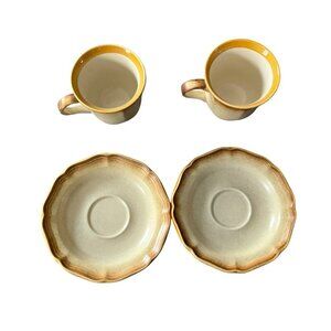 Expertly crafted in Japan, this set includes two stoneware cups and matching saucers. The elegant Whole Wheat design offers a timeless addition to dining collections.