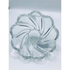 Vintage Mikasa crystal swirl scalloped clear art glass candy, nut, trinkets dish. Germany 5 1/2” X 3”