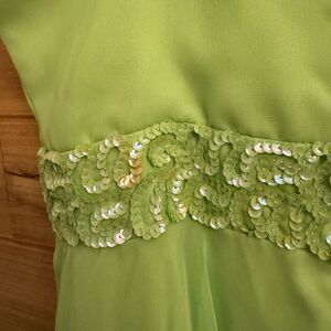 Vintage Mike Benet Size Small Lime Green Sequin Babydoll Chiffon Prom Dress