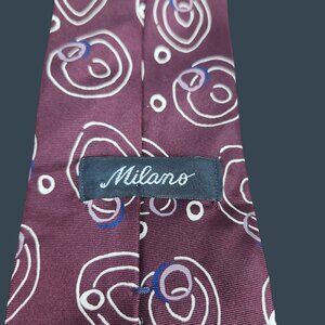 Vintage Milano Burgundy Silk Tie With Abstract Circle Design Made In Italy