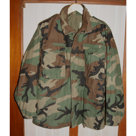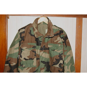 Vintage Military Jacket Men Small X-Short Coat Cold Weather Field Woodland Camo