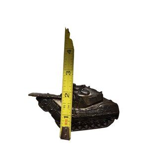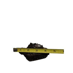 This tank-shaped belt buckle is crafted from sturdy brass, offering a unique and rugged design. Its dimensions ensure it stands out, making it a conversation starter. Ideal for those looking to add a bold statement to their accessory collection.