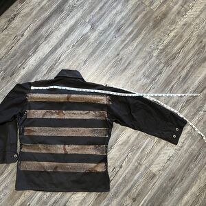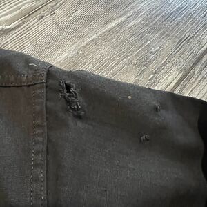 Vintage military-style field jacket with multi-pocket front, button closure, and faded black wash. Subtle distressing adds authentic utilitarian character.