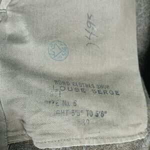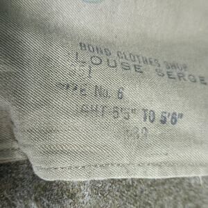 Interior markings: Stamped text including "BOND CLOTHES SHOP" and "BLOUSE SERGE" with additional inspection stamp in a circular emblem.