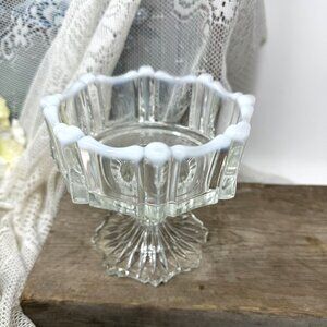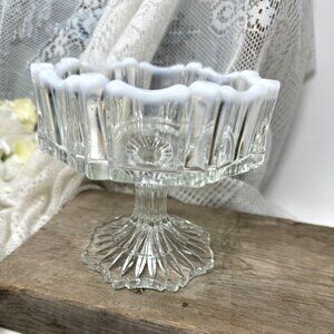 Vintage Milk Glass & Clear Glass Compote Dish Fenton