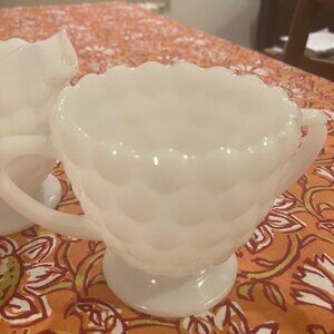 Vintage Milk Glass Creamer and Sugar Bowl Set Hobnail Milkglass Kitchen Decor