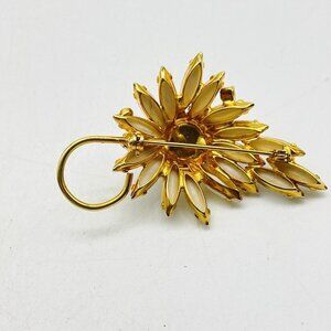 Vintage Milk Glass Flowering Vine Pin Gold Tone Daisy Coneflower Nature Garden