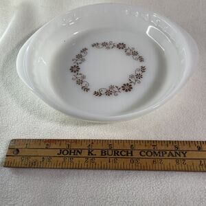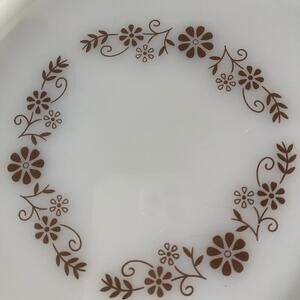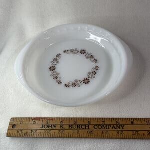 Vintage Milk Glass Fluted Pie Plate Brown Daisy Retro Dyna ware Pyr-O-Rey 9"