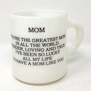 Pair of Vintage Milk Glass Mugs Greatest Mom and Dad Double Sided & Stackable