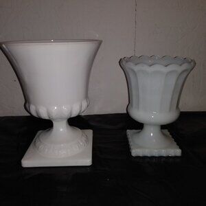 E.O. Brody Co. MJ-43 white milk glass pedestal vase, often referred to as a compote or urn