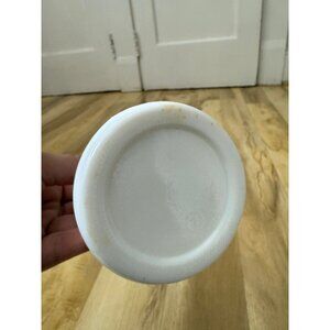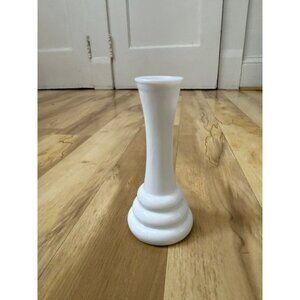 Classic white milk glass vase featuring a flared top and elegant tiered base. Simple yet timeless design makes it perfect for displaying single stems or small floral arrangements. Clean and glossy with minor wear on the base consistent with age.