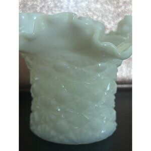 Vintage Milk Glass White Vase - DAISY BUTTON CRIMPED EDGE,Tulip Rim