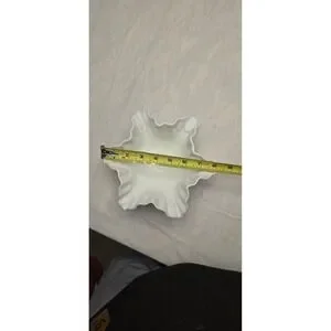 The product is a vintage Fenton milk glass hobnail ruffle rim bowl. Made by renowned glass manufacturer Fenton, this bowl features a classic milk glass production style. ruffle rim design add a touch of elegance to any table setting or decorative display. A timeless piece that showcases the craftsmanship and beauty of vintage glassware. Has no cracks or chips very Beautiful piece of art with roses on it