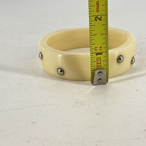 Vintage Milk Ivory Bakelite Bangle Bracelet Chrome Inlaid Studs Geometric Shape