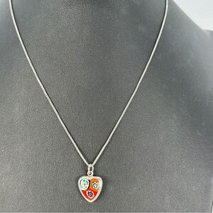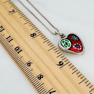 Vintage Millefiori Heart Necklace Italian 925 Sterling Silver Box Chain Red Blue