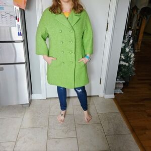 Miller Schulman Vintage 1960s green double-breasted wool coat. 3/4 sleeves, perfect for spring!