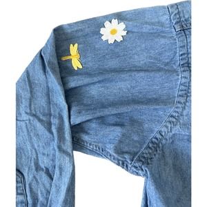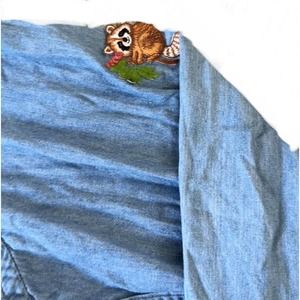 Vintage Miller Stockman Blue Denim Hippie Patches XL Button Up Shirt VTG