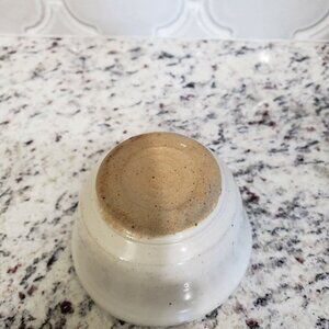 I do not know who made this bowl set. It is marked Milligan with a backwards R and forward P. It could be Ron Milligan- the one hand potter or it could be Rockwood Pottery but the RP mark does not look exactly correct. If you have any ideas who made this beautiful piece, please, let me know.