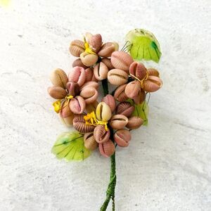 An amazing labor of love, gorgeous colors, each little flower is created by drilling tiny shells, then wire wrapping each one and creating the arrangements you see in the photos. It is a great assortment of styles and colors.