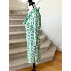 Vintage Milly New York Kelly Green & White Eyelet Floral Ruffle Neck Shift Dress