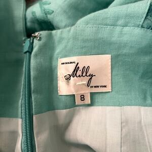 Vintage Milly of New York Linen Embroidered Floral Green V-Neck Dress Sz 8 NWOT