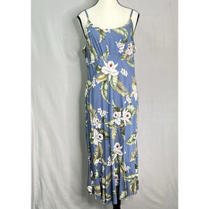 Vintage Milson by Ky's Hawaiian Bias Cut Sundress Floral Sz L Rayon Poplin, please check measurements