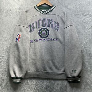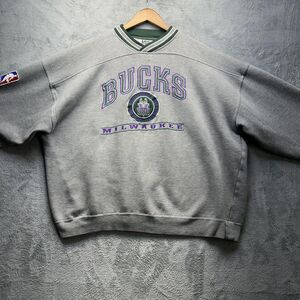 Vintage Milwaukee Bucks Sweatshirt Sz XL Gray Green NBA Basketball Crewneck 90s