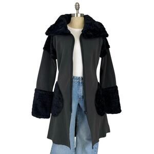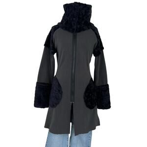 Vintage Mimdo Penny Lane Black Trim Gray Fleece Full Zip Long Jacket. Originally labeled a size M, but fits more like a size S and I included more measurements below for the perfect fit. High quality and in good condition. 100% polyester material. Full zip front, the collar can be worn down or up more like a neck warmer, gray fleece like material with black faux fur like material trim. Has pockets. Perfect statement jacket for cooler weather.