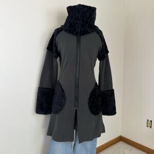 Vintage Mimdo Penny Lane Black Trim Gray Fleece Full Zip Long Jacket (Sz S)