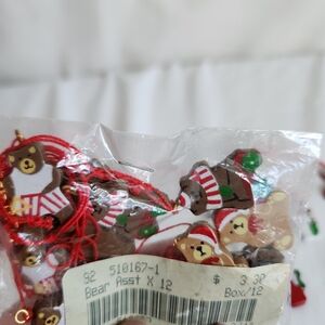 Add charm to your holiday decor with this set of 29 festive ornaments. The new unopened pack of 12 is bears. All characters are wooden. The 7 clear snowflakes are plastic. Perfect for a minature tree tradition