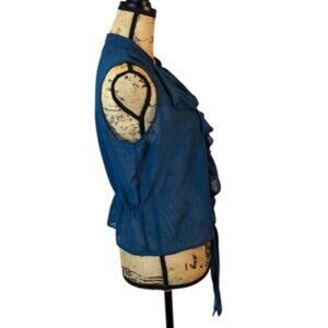 Vintage Mine Blue Sheer Ruffled Sleeveless Blouse Medium