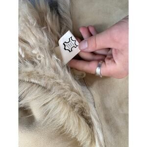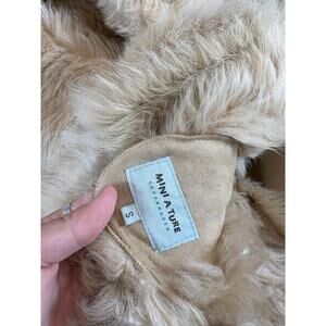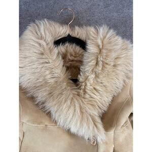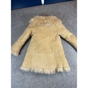 Vintage Mini A Ture Suede Shearling Coat Womens Small Tan Faux Fur Trim Winter Jacket Boho Y2K