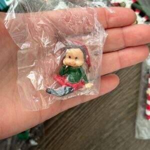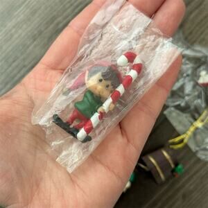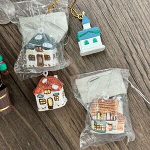 Vintage Mini Christmas Ornaments Set of 11 Miniature Festive Elf House School