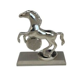 This vintage mini collectible carousel horse clock is a must-have for any clock enthusiast or collector. With a size of 3 x 3, it features an analog display type and a quartz (battery powered) movement source. The clock is made of metal and has a unique horses theme that makes it a great addition to any decorative collectibles collection. It's a novelty clock that is perfect for adding a touch of whimsy to any room. The clock is battery-powered and has a charming design that will make it a great conversation piece. This clock is a great gift for anyone who loves horses or vintage collectibles.