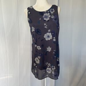Vintage Mini Dress Size 8 Petite 8P Gray Floral Chiffon Sleeveless Fairy 90s Y2K