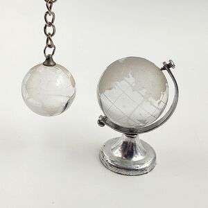 Vintage Mini Etched Glass Desk Globe & Matching Keychain