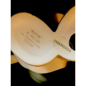 This vintage mini figurine features a cute clown girl called Katie from the Precious Moments collection. Made by Enesco in Indonesia in 1993, this small heart-shaped sculpture is perfect for all occasions. The figurine depicts Katie holding hearts and is adorned with colorful patterns, making it a beautiful addition to any decorative collectibles or sculptures & figurines collection.