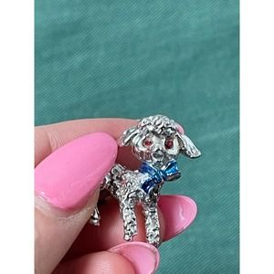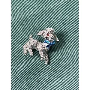 Vintage Mini Little Lamb Rhinestone Pin with Red Eyes and a blue scarf