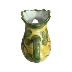 It is considered a decorative item, often associated with farmhouse or cottage-style kitchens. Approximately 3 inches tall, 3 inches wide, including the handle, one and a half inches wide at the base, 2 inch opening at the top.