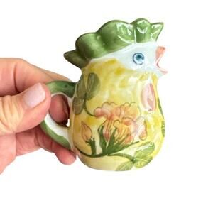 Vintage Mini Rooster Creamer Pitcher Floral Hand Painted Andrea by Sadek