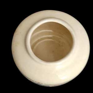 This small crock measures approximately 3" tall by 2.5" wide. It has fine glaze crazing typical of older pottery, and the base is unmarked. Originally may have been part of a small decorative or functional set.