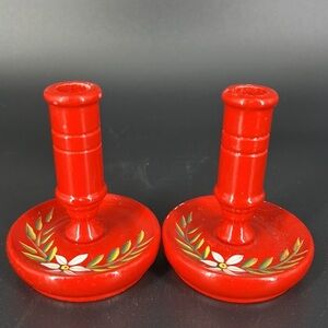 Pair of Vintage Mini HandPainted Wooden Swedish Candleholders